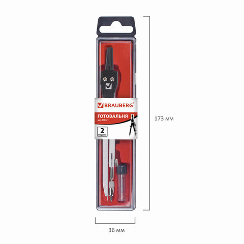 Готовальня STAFF, 2 предмета: циркуль 120 мм, запасные грифели, пластиковый пенал, дисплей, 210862