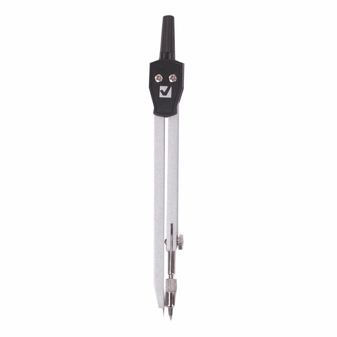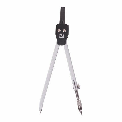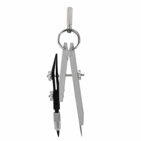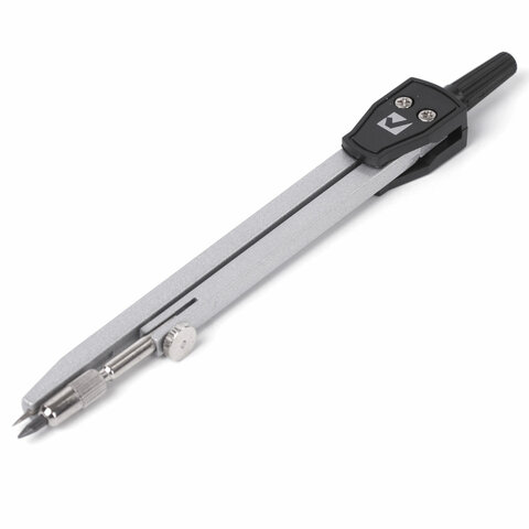 Циркуль длиной 135 мм имеет несгибаемые штанги. Изготовлен из металла, дополнительный цвет элементов - черный.