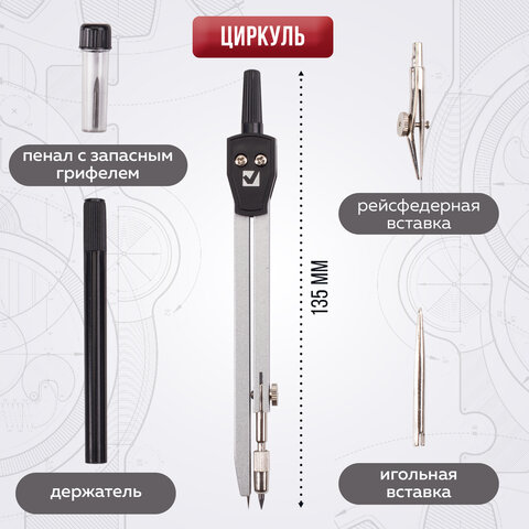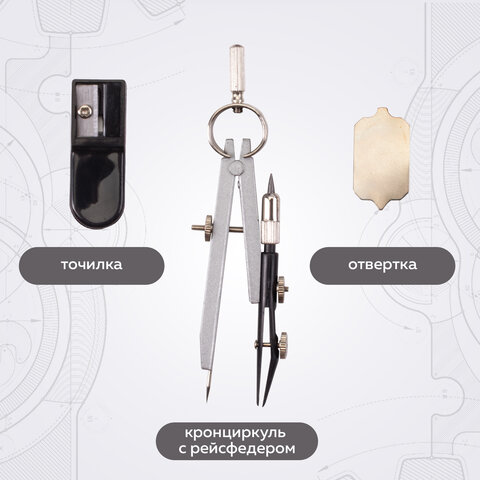 Металлическая готовальня BRAUBERG "Architect" предназначена для выполнения чертежных работ. Для учеников старших классов и студентов.