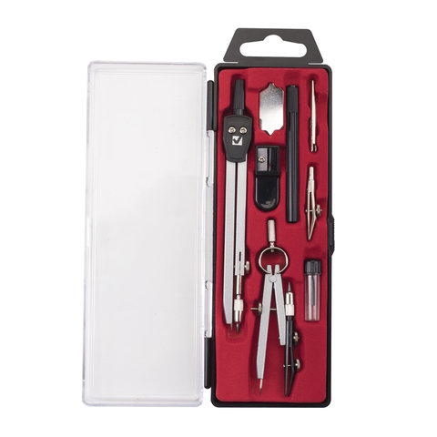 Готовальня STAFF, 9 предметов: циркуль 120 мм, чертежные принадлежности, механический карандаш, пластиковый пенал, 210863