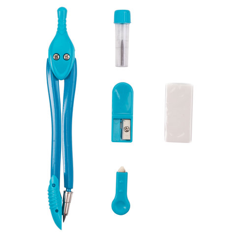 Циркуль длиной 135 мм имеет несгибаемые штанги и пластиковый защитный колпачок для иглы. Изготовлен из металла. Цвет - ассорти (без возможности выбора цвета).