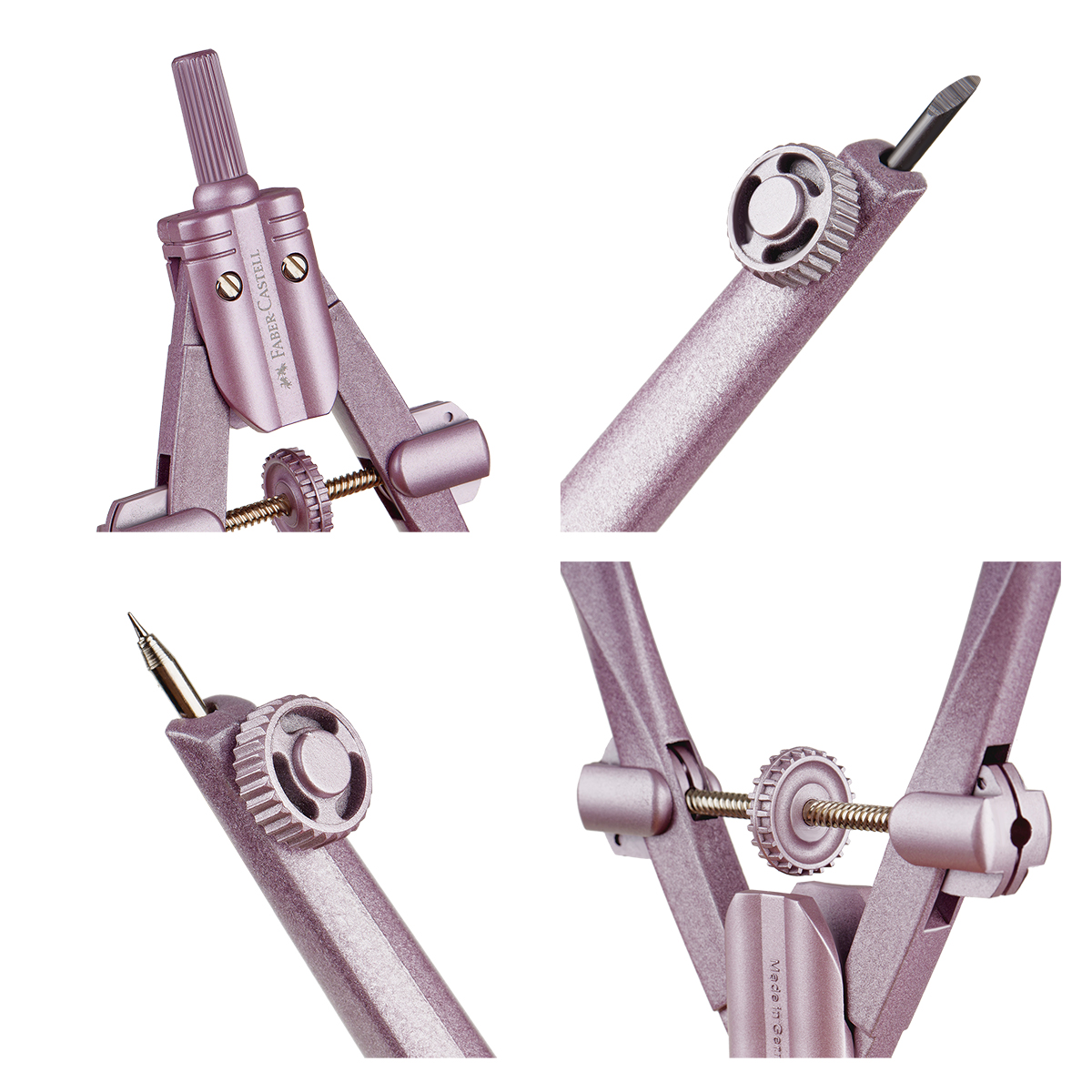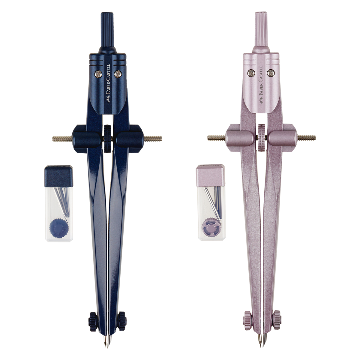 Качество и функциональность в сочетании с изысканным дизайном – вот девиз компании Faber-Castell. Даже в том, что касается циркулей, лидер рынка идет в ногу с последними тенденциями. Однако, помимо модного дизайна, Faber-Castell также предлагает надежные технологии: прочные зубчатые колесики, прочные центральные колесные шпиндели, легко регулируемые ножки, а также нескользящие иглы и плотные зажимы грифелей для точных линий, являются стандартными характеристиками всех циркулей Faber-Castell. Регулировочный механизм данного циркуля позволяет чертить окружности диаметром до Ø 340 мм. Дополнительно в комплекте с циркулем идут грифели. Рекомендовано для школьников и студентов. Циркуль представлен в темно-синем цвете и перламутровом розовом. Производство Германия.
