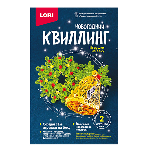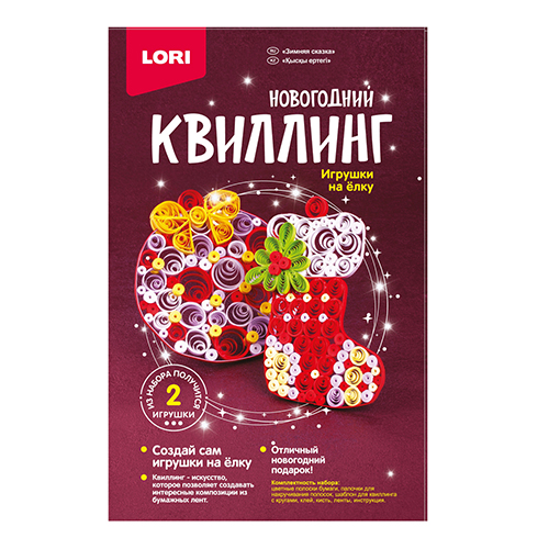 Набор для квиллинга " Lori " Новогодний Рождественское настроение, цветные полоски бумаги, палочки для накручивания полосок, шаблон для квиллинга с кругами, клей, кисть, пайетки, ленты, инструкция.
