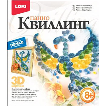 Набор для квиллинга " Lori " Панно Синяя птица, цветные полоски бумаги, палочки для накручивания полосок, шаблон для квиллинга.