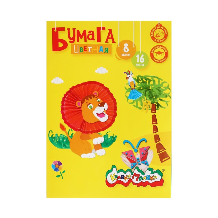 Бумага цветная А4 8 цветов 16 листов "Каляка-Маляка", газетная, на скрепке