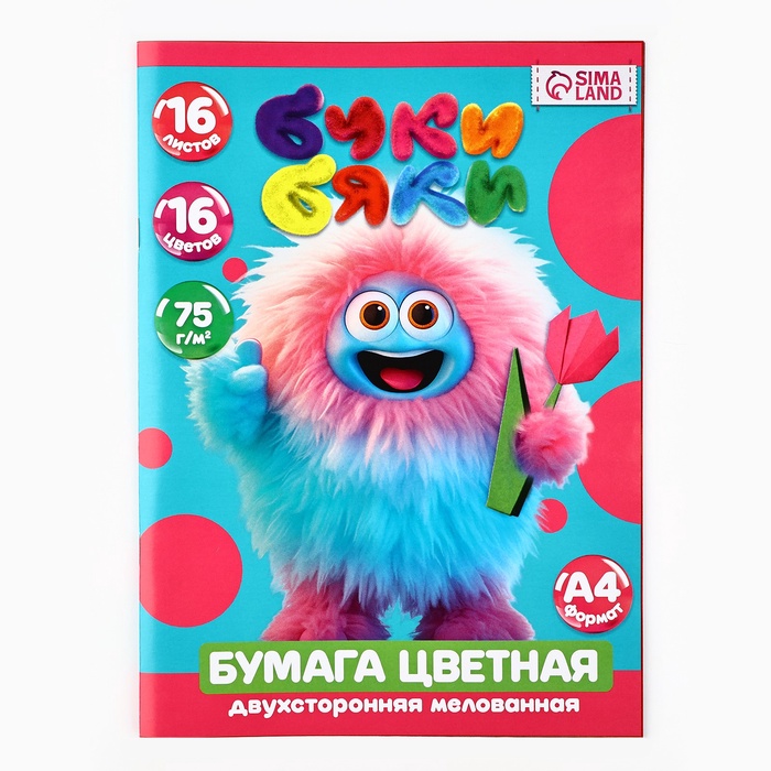 Бумага цветная А4 мелованная 16л 16 цв двусторонняя БукиБяки