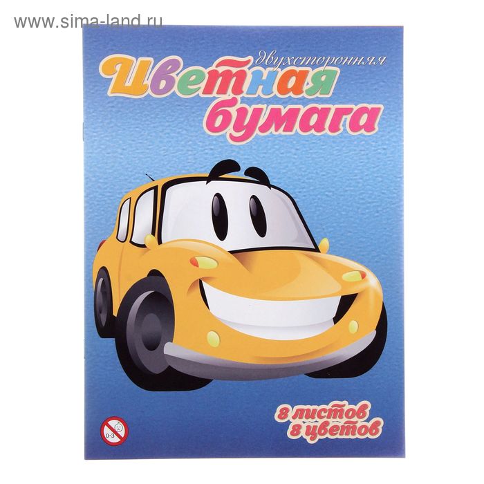 Бумага цветная А4, 8 листов, 8 цветов "Машинка", офсет, двусторонняя, на скобе