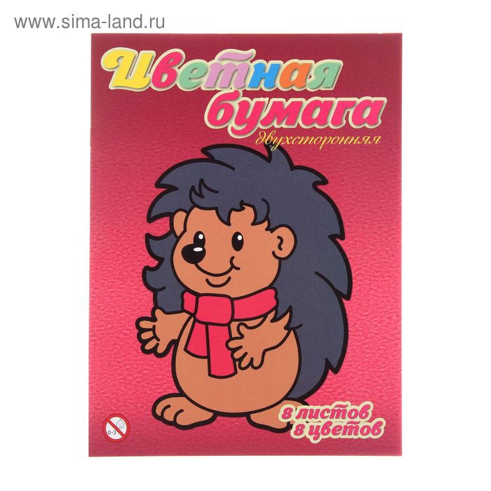 Бумага цветная А4, 8 листов, 8 цветов "Ежик", офсет, двусторонняя, на скобе
