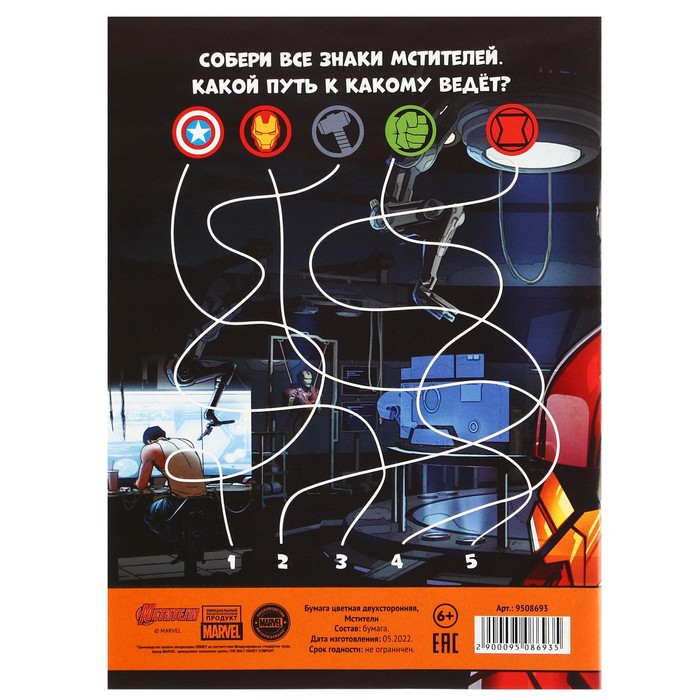 Набор цветной бумаги с голографией А4, 8 листов, 8 цветов, 80г/м2, Человек-Паук