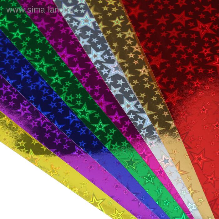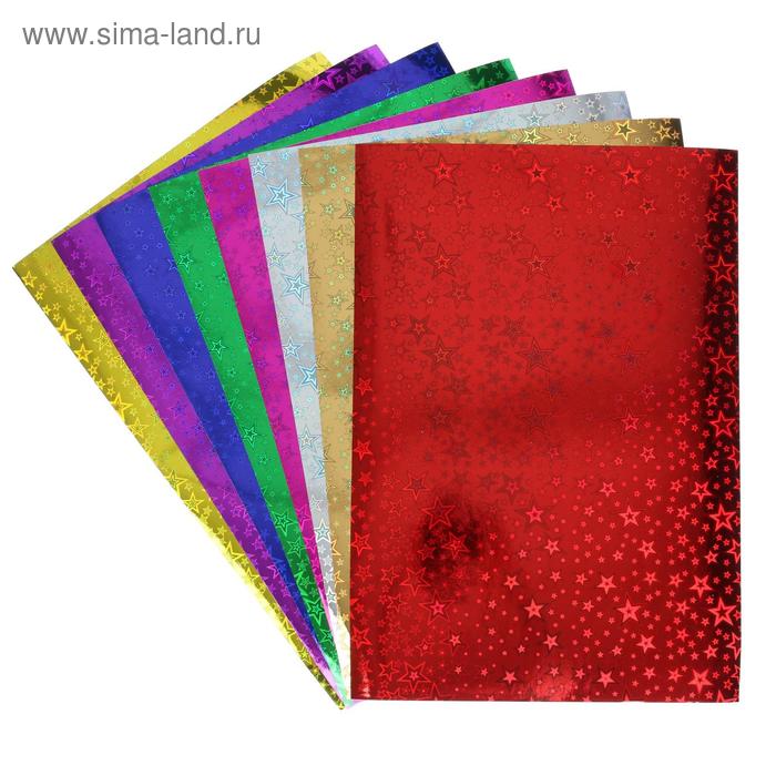 Бумага цветная формат А4 10 листов 5 цветов самоклеящаяся голография