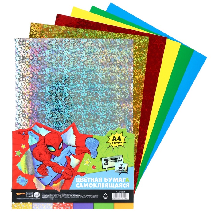 Набор цветной бумаги с голографией А4, 8 листов, 8 цветов, 80г/м2, Человек-Паук