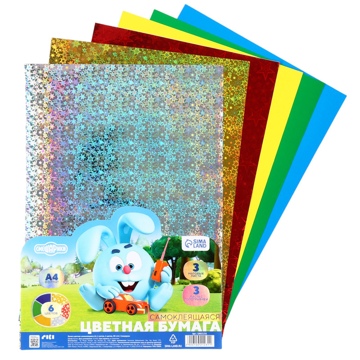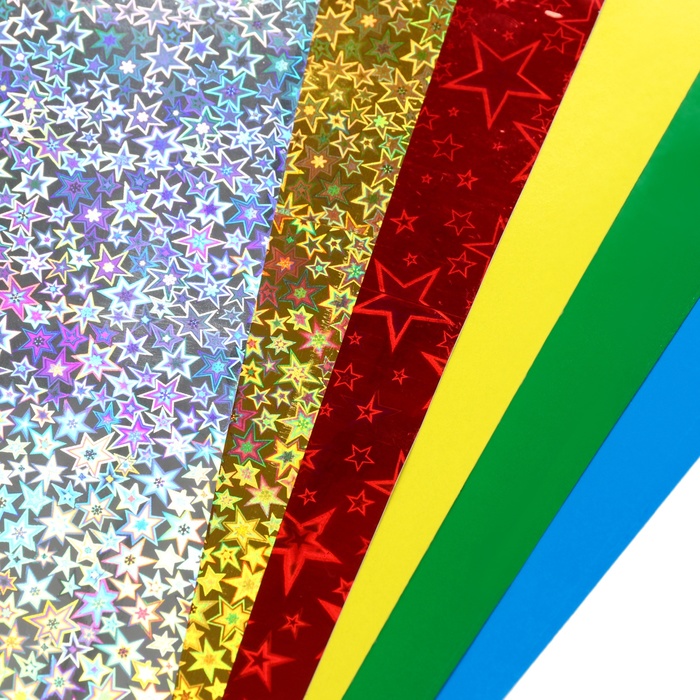 Бумага цветная формат А4 10 листов 5 цветов самоклеящаяся голография