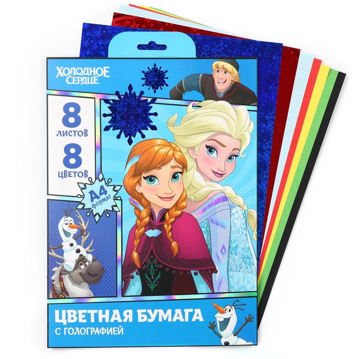 Набор цветной бумаги с голографией А4, 8 листов, 8 цветов, 80г/м2, Человек-Паук