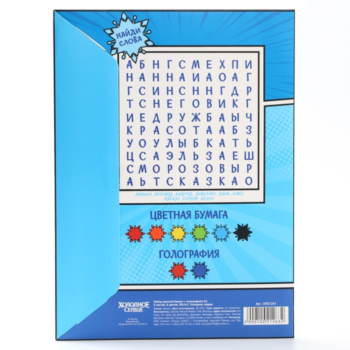 Бумага цветная формат А4 10 листов 5 цветов самоклеящаяся голография