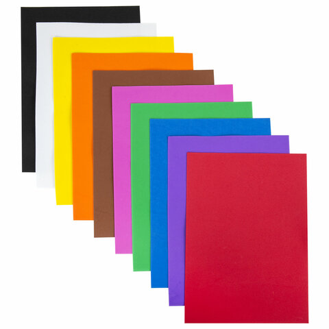 10 интенсивных цветов формата А4 позволят создать уникальную и эффектную поделку! Толщина каждого листа - 1 мм, размер листа - 29,7х21 см. Материал очень прост в использовании: легко режется обычными ножницами, ему можно придать любую форму растягивая и скручивая.
