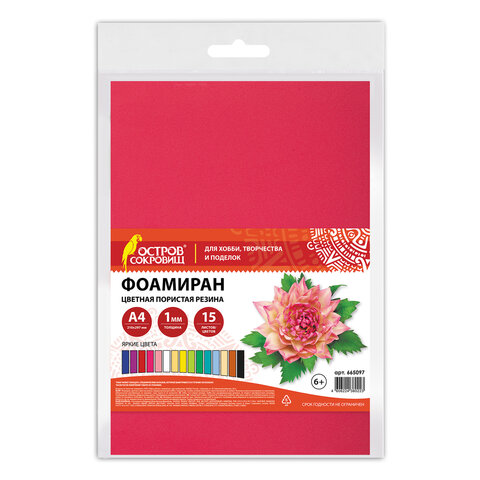 Цветная пористая резина (фоамиран) ОСТРОВ СОКРОВИЩ предназначена для хобби, творчества и рукоделия.