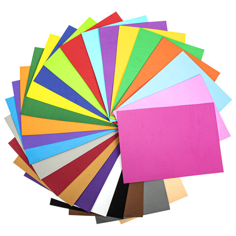 25 интенсивных цветов формата А4 позволят создать уникальную и эффектную поделку! Толщина каждого листа - 1 мм, размер листа - 29,7х21 см. Материал очень прост в использовании: легко режется обычными ножницами – ему можно придать любую форму растягивая и скручивая.