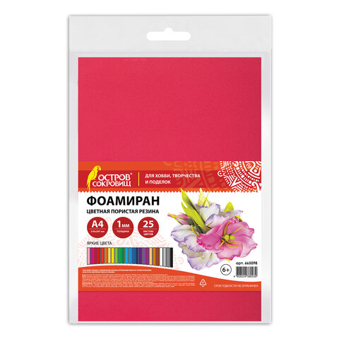 Цветная пористая резина (фоамиран) ОСТРОВ СОКРОВИЩ предназначена для хобби, творчества и рукоделия.