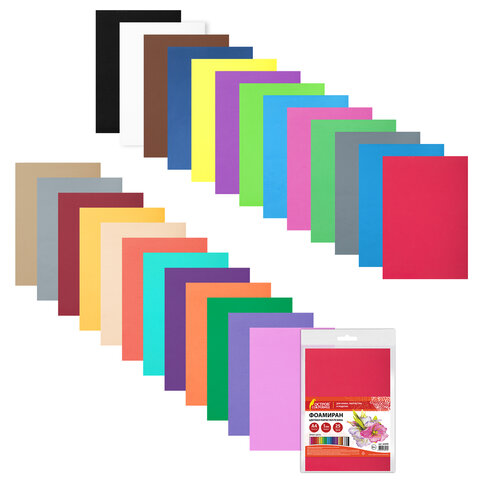 Пористая резина/фоамиран А4, 2 мм, НАБОР, 20 листов, 20 цветов, пастельные цвета, блестки, ОСТРОВ СОКРОВИЩ, 665665