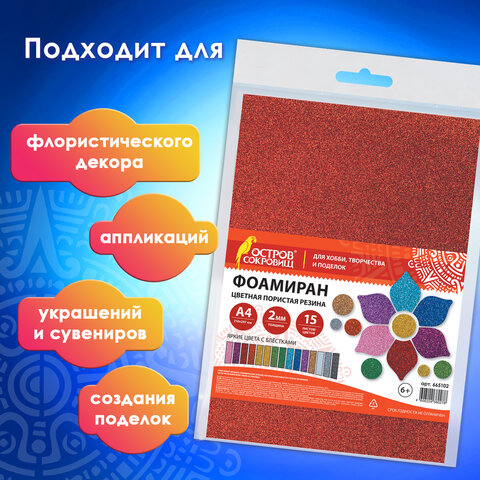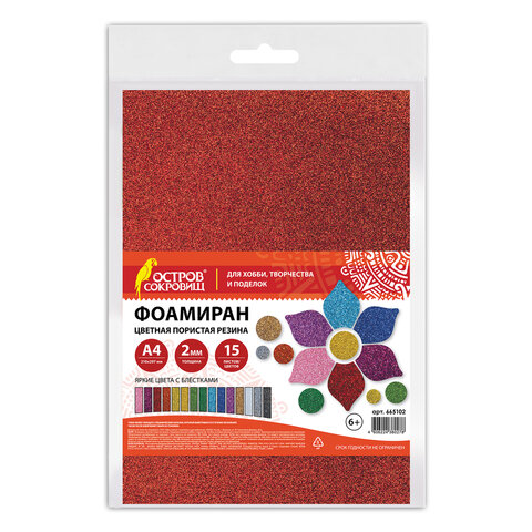 Цветная пористая резина с глиттером ОСТРОВ СОКРОВИЩ – блестящий материал для воплощения творческих идей!