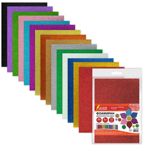 В набор входят 15 блестящих цветов, которые позволят создать уникальную и эффектную поделку! Листы формата А4 (21х29,7 см) толщиной 2 мм удобны для создания украшений из фоамирана, создания аппликаций, декорирования различных предметов и изделий.