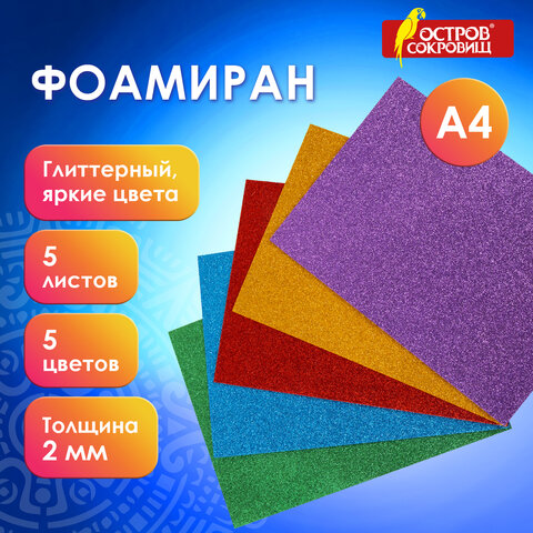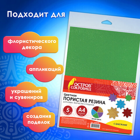 Цветная пористая резина с глиттером ОСТРОВ СОКРОВИЩ - блестящий материал для воплощения творческих идей!