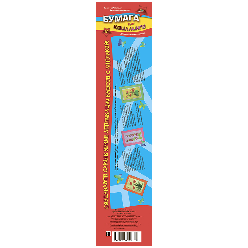 Бумага для квиллинга Апплика, 4 цвета, 3мм, 200 полос, пакет, европодвес