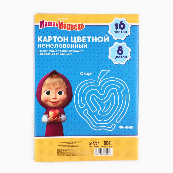 Картон цветной А4 16л 8 цв немелованный 200г одност в термоусадке "ArtFoxstudy "