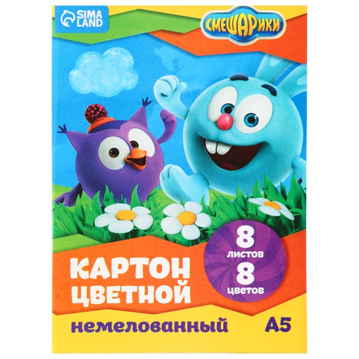 Картон цветной двусторонний А4 8 листов 8 цветов мелованный 230г/м² «1 сентября: БукиБяки»
