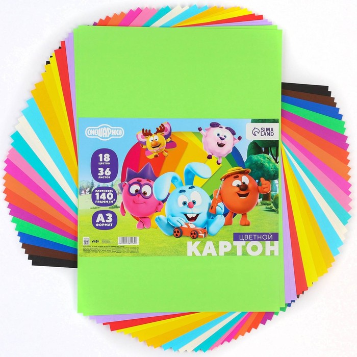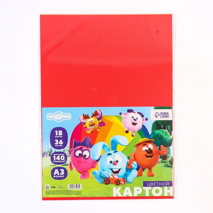 Картон цветной с блёстками, А4, 10 листов, 10 цветов, немелованный, двусторонний, в папке, 250 г/м², Смешарики