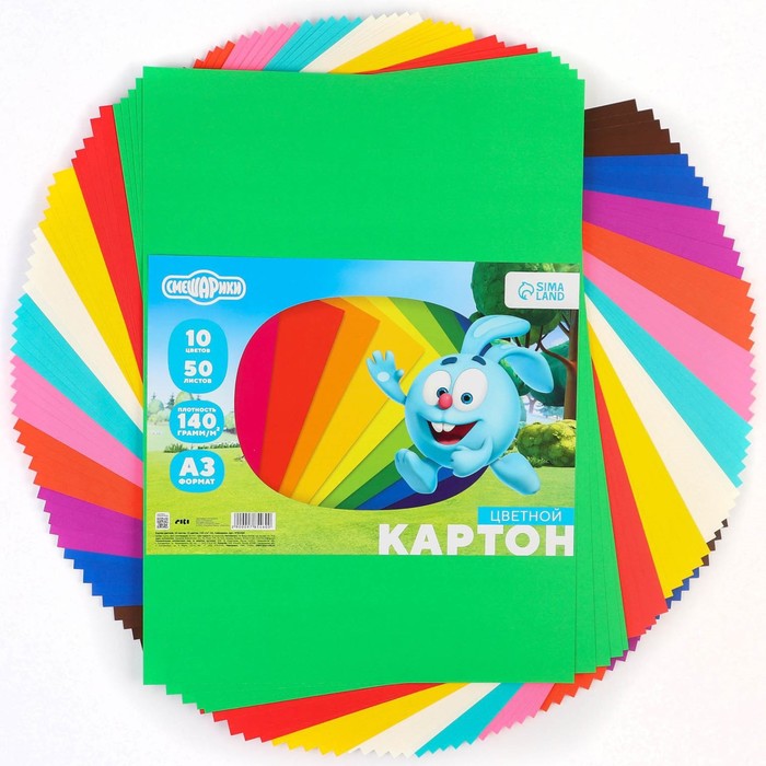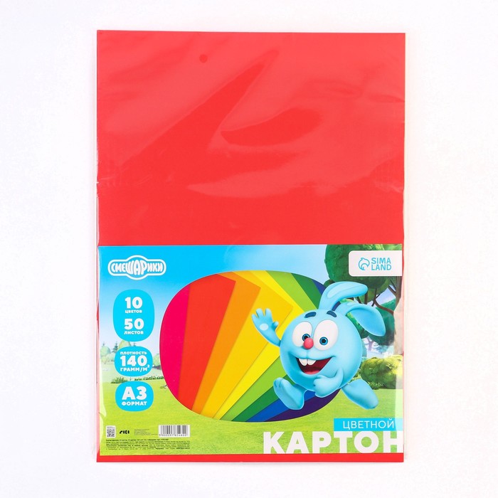 Картон цветной с блёстками, А4, 10 листов, 10 цветов, немелованный, двусторонний, в папке, 250 г/м², Смешарики