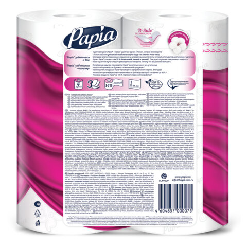 Бумага туалетная быт., спайка 4 шт., 3-слойная (4х16,5 м), PAPIA, аромат Таинственный, 5080741
