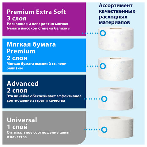 Бумага туалетная Tork SmartOne "Advanced"(T9) 2-слойная, мини-рулон, 170м/рул., тиснение, белая, ЦВ 472261 (ПОД ЗАКАЗ)