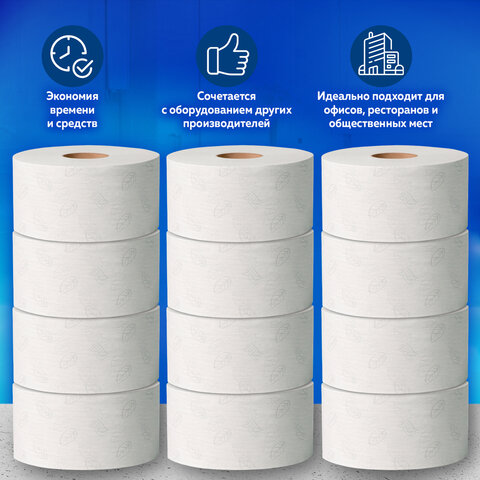 Бумага туалетная 200 метров, PROtissue (T2) COMFORT, 1-слойная, белая, КОМПЛЕКТ 12 рулонов, С190