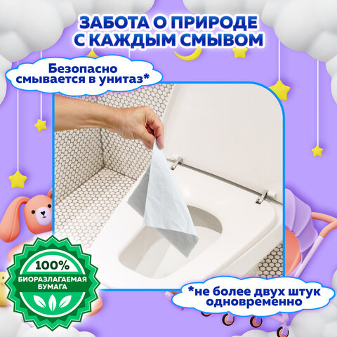Влажная детская туалетная бумага LAIMA Kids создана специально для детей. Имеет оптимальный уровень pH – 5,5. Ее можно безопасно смывать в унитаз, как и сухую туалетную бумагу (не более 2 шт. одновременно!). Листы туалетной бумаги пропитаны специальным лосьоном с экстрактом ромашки.