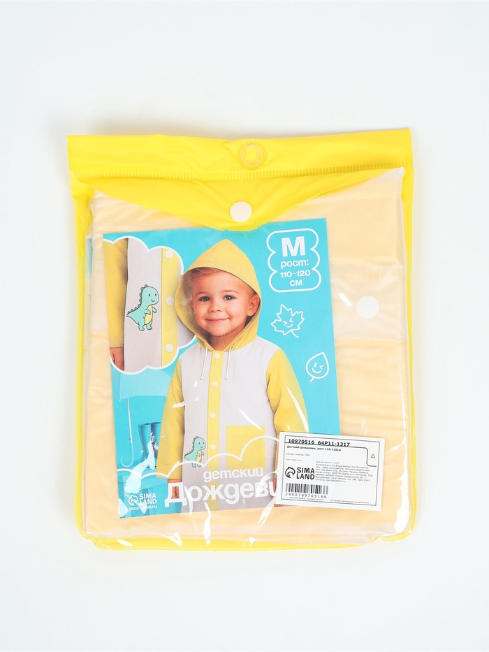 Детский дождевик "Динозаврик", размер S, рост 100-110см