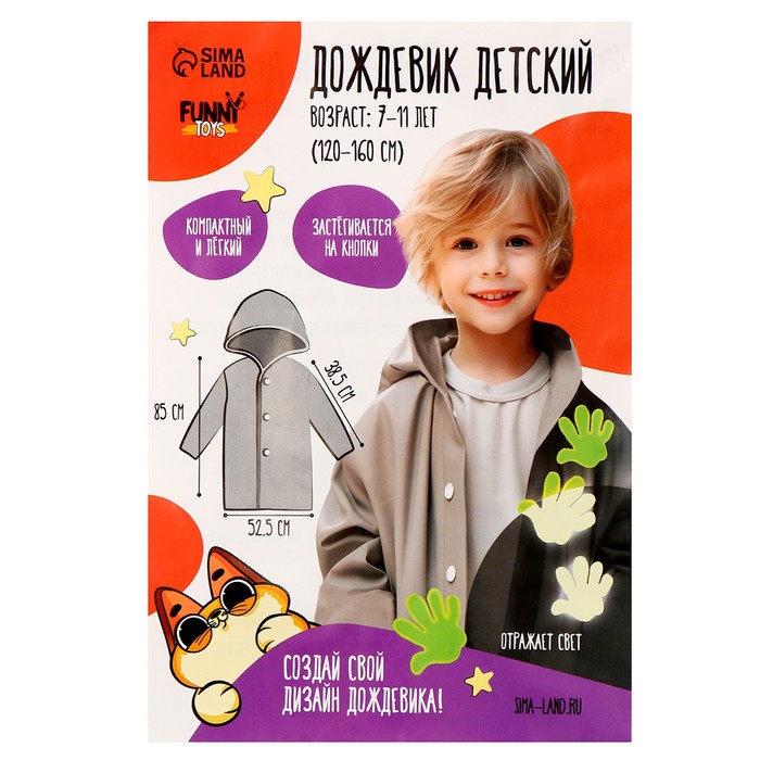 Детский дождевик "Котики", размер M, рост 110-120см
