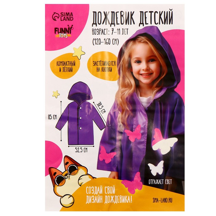 Дождевик детский со светоотражающими наклейками, рост 120-160 см