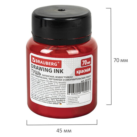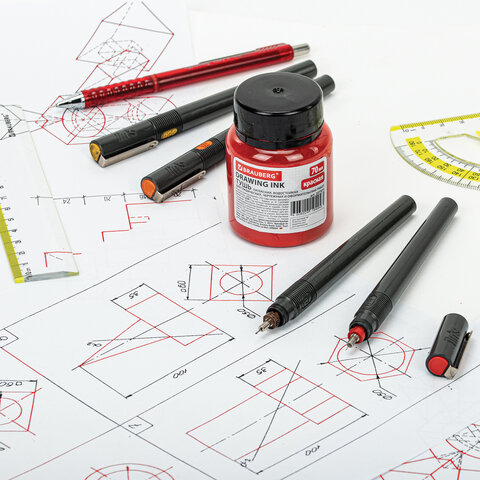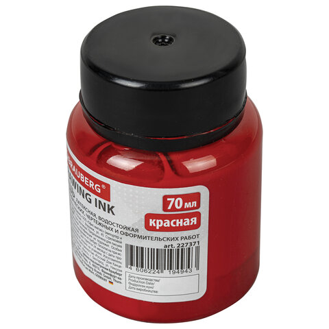 Не смывается после высыхания, имеет густой цвет и легко сходит с пера или рейсфедера. Широкое горлышко и достаточный объем флакона в 70 мл позволяют легко обмакнуть перо или рейсфедер. Цвет - красный.