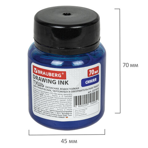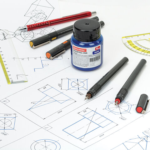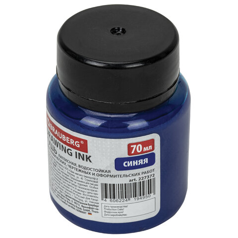 Не смывается после высыхания, имеет густой цвет и легко сходит с пера или рейсфедера. Широкое горлышко и достаточный объем флакона в 70 мл позволяют легко обмакнуть перо или рейсфедер. Цвет - синий.