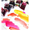 26 ярких, прозрачных оттенков, изготовленных на основе жидких красителей в растворе шеллака, сообщающего красочному слою водостойкость и глянец. Все цвета смешиваются между собой, кроме серебра и золота. Тушь не рекомендуется смешивать с другими красками из-за различия связующего. Инструменты для работы: кисть, перо, аэрограф в процессе работы можно очищать водой. Загустевшую тушь можно разбавить спиртом.
