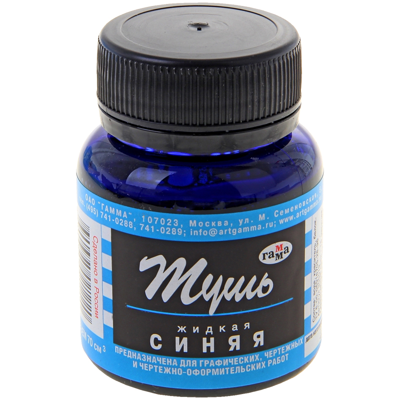 Тушь жидкая Гамма, синяя, 70мл
