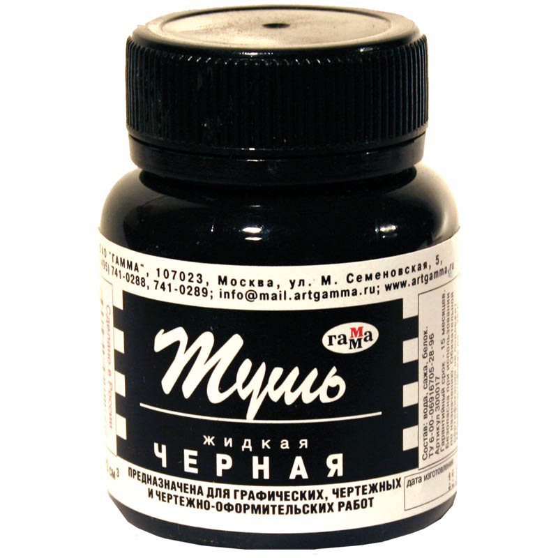 Тушь жидкая Гамма, черная, 70мл