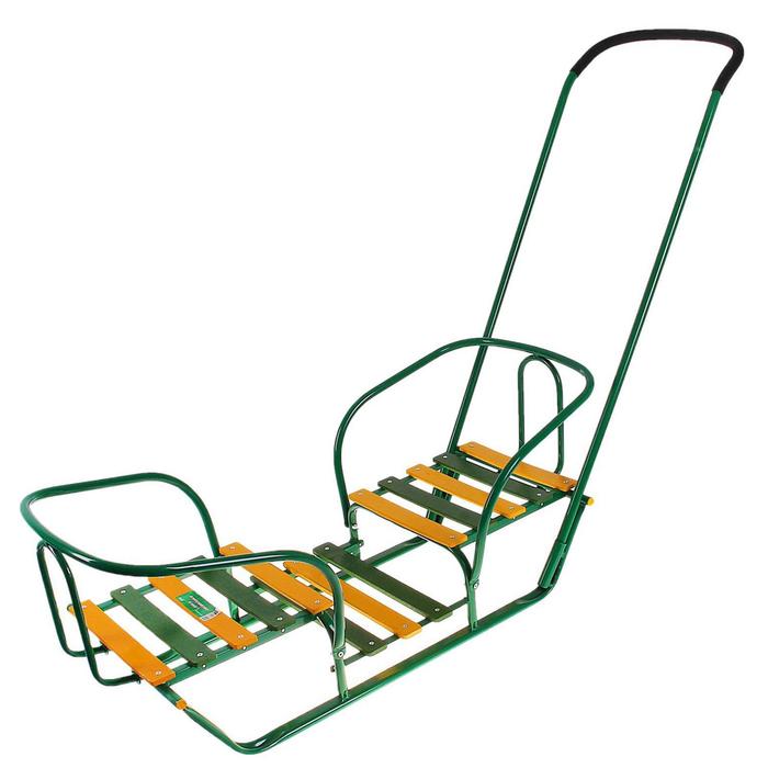 Санки для двойняшек с толкателем, цвет зеленый