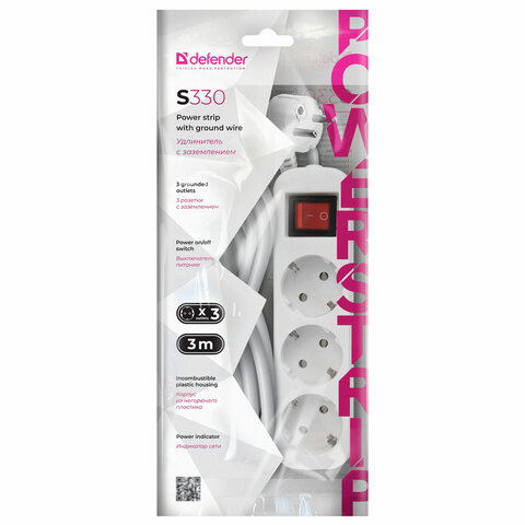 Высококачественный сетевой удлинитель DEFENDER S330 предназначен для использования в быту, в офисе, на даче для подключения электроприборов различного назначения: осветительные приборы, бытовая техника, электроинструмент и т.д.