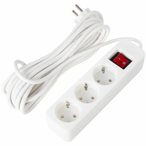 Удлинитель У10-003 3 розетки, с заземлением, с выключателем, 10А, 5 м, белый, 6698
