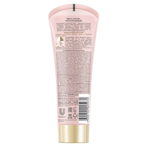 Специальная формула питательного крема для рук разработана для смягчения кожи рук и интенсивного питания. Комплекс эффективно действующих компонентов оказывает увлажняющее и успокаивающее действие, питает кожу, способствует повышению ее эластичности. Действие крема усилено формулой Silk oil elixir. Микро-масла восстанавливают клетки кожи и, в комплексе с протеинами шелка, делают ее мягкой и нежной.