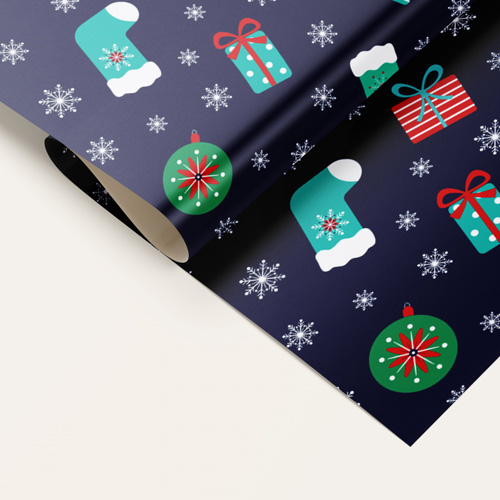 Упаковочная бумага Новогодняя " Миленд " 70*100см 10 листов, Носочки и подарки, в рулоне, 90г/м2