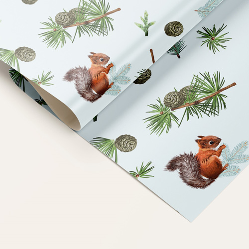 Упаковочная бумага Новогодняя " Миленд " 70*100см 10 листов, Белочки и веточки, в рулоне, 90г/м2