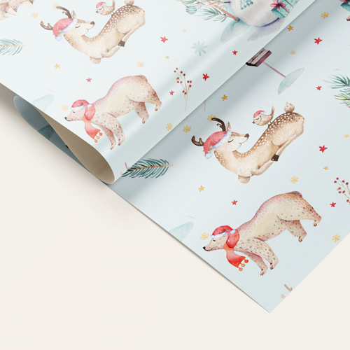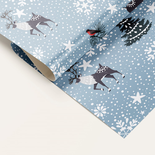 Упаковочная бумага Новогодняя " Миленд " 70*100см 10 листов, Зима в лесу, в рулоне, 90г/м2